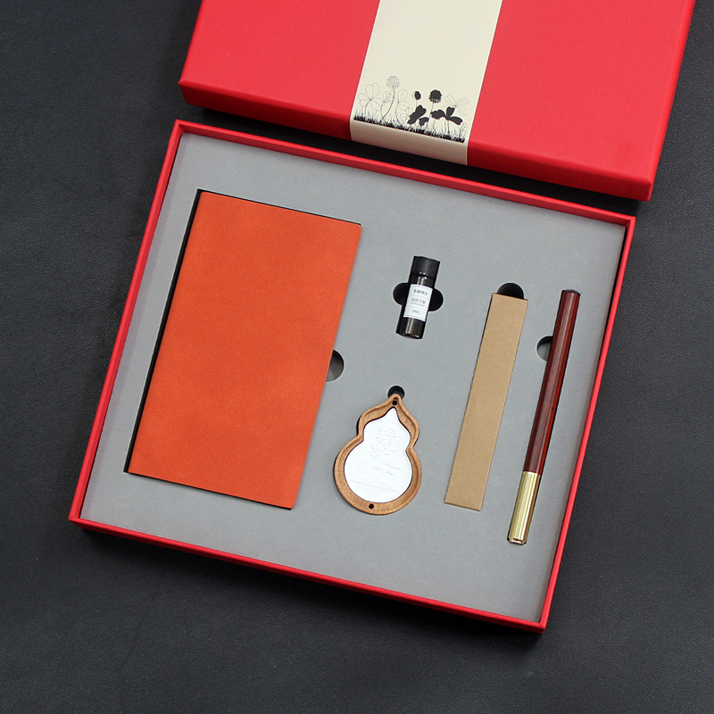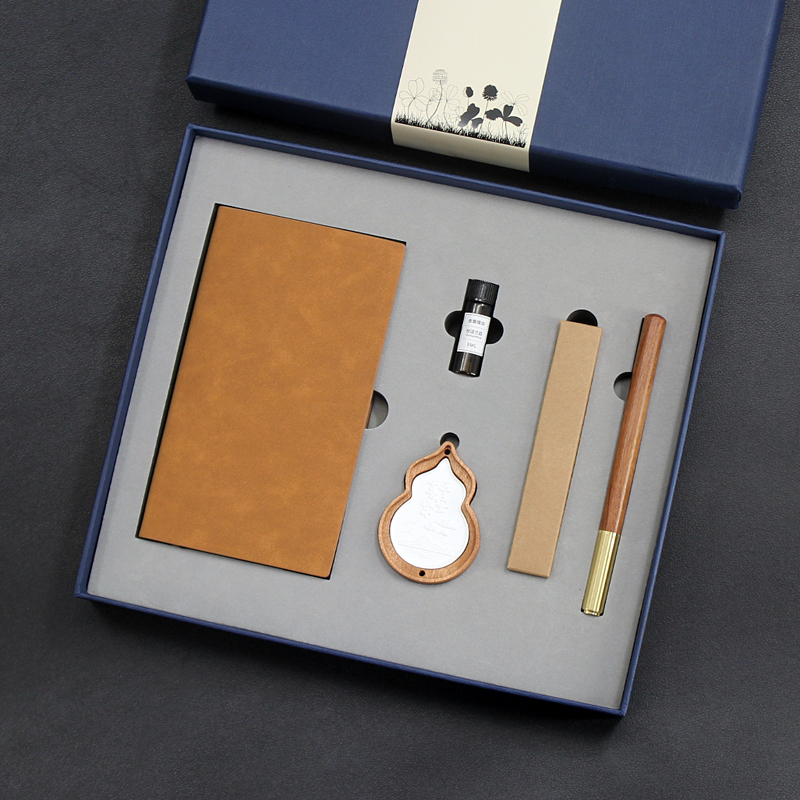 型号:T4-17 品名:书香致远扩香石+笔记本+香薰精油+挂绳流苏+红木笔 包装:精美礼盒+手提袋 礼盒尺寸:280*250*35mm 产品颜色:棕色、黑色、红色 礼盒颜色:蓝色、红色 零售价:108元