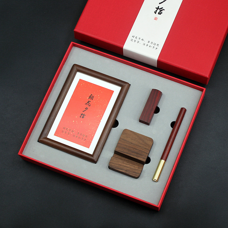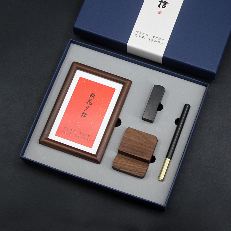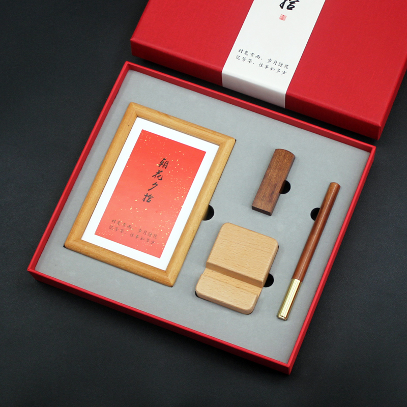 品名:朝花夕拾实木相框+方寸印章+手机支架+红木笔