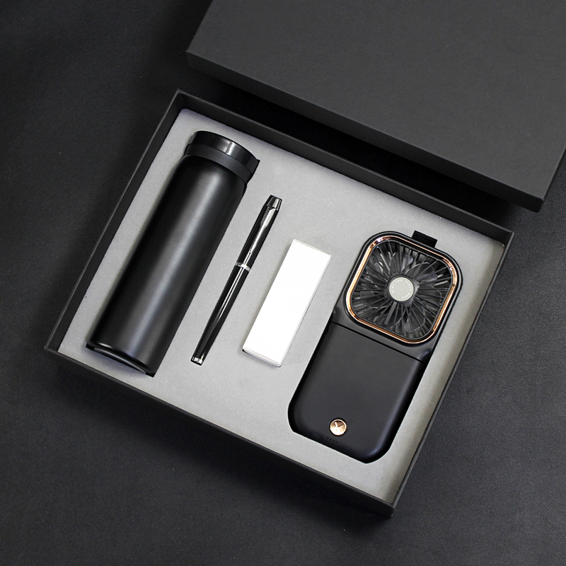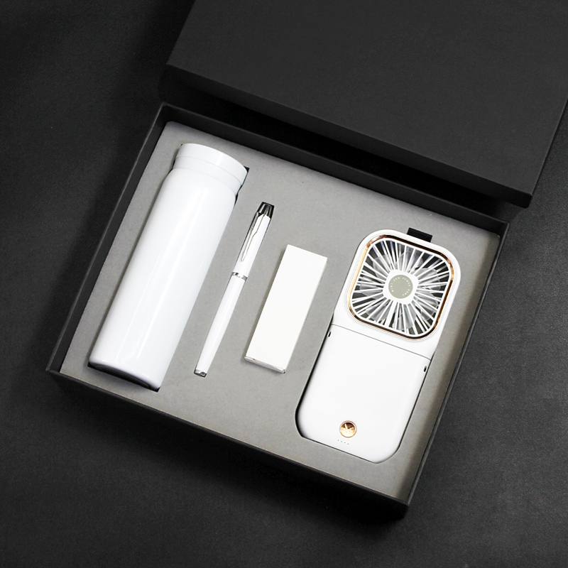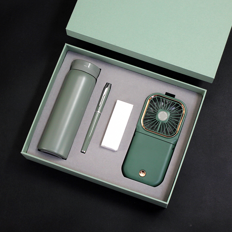 型号:T9-04 品名:多功能挂脖风扇+304保温杯+金属笔 包装:精美礼盒+手提袋 礼盒尺寸:280*225*65mm 产品颜色:白、蓝、绿、黑、粉 礼盒颜色:多色 零售价:168元
