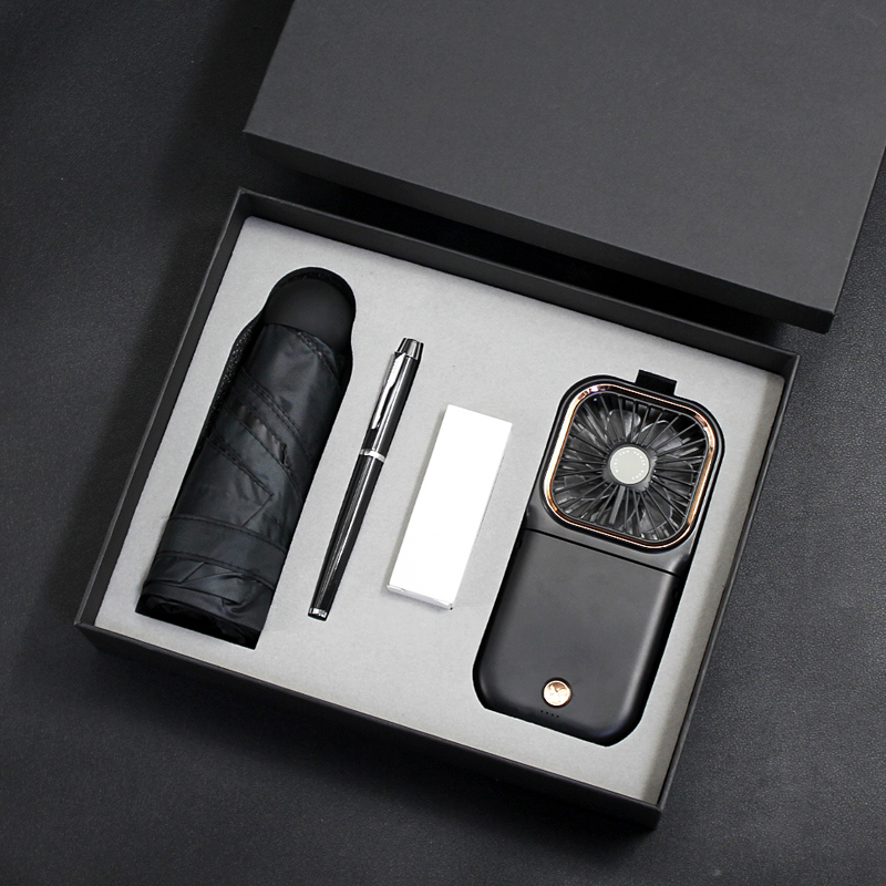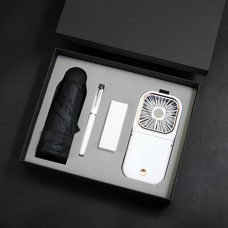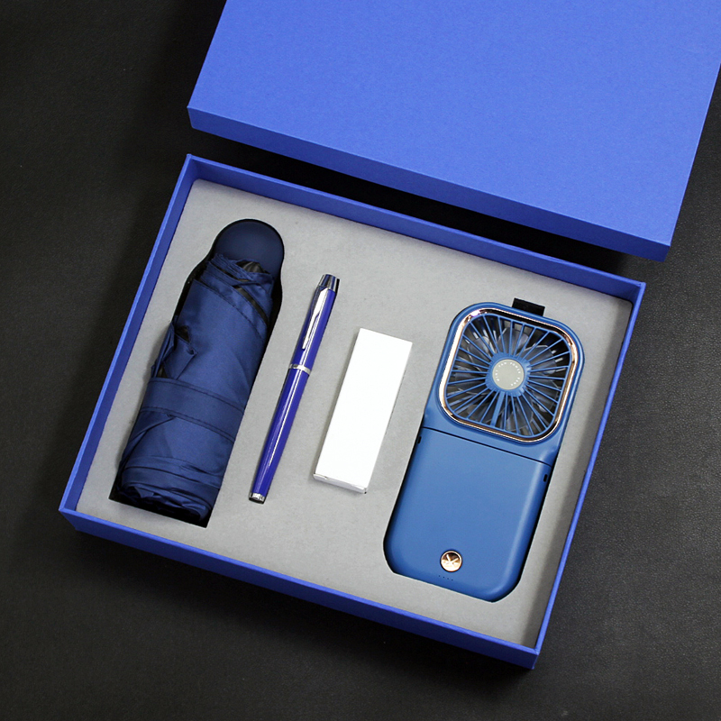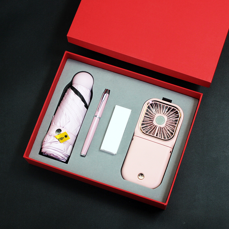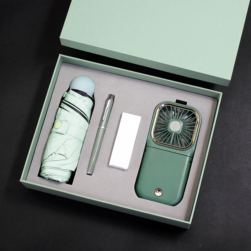 型号:T9-05 品名:多功能挂脖风扇+晴雨伞+金属笔 包装:精美礼盒+手提袋 礼盒尺寸:280*225*65mm 产品颜色:白、蓝、绿、黑、粉 礼盒颜色:多色 零售价:178元