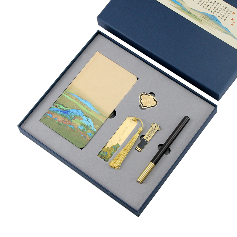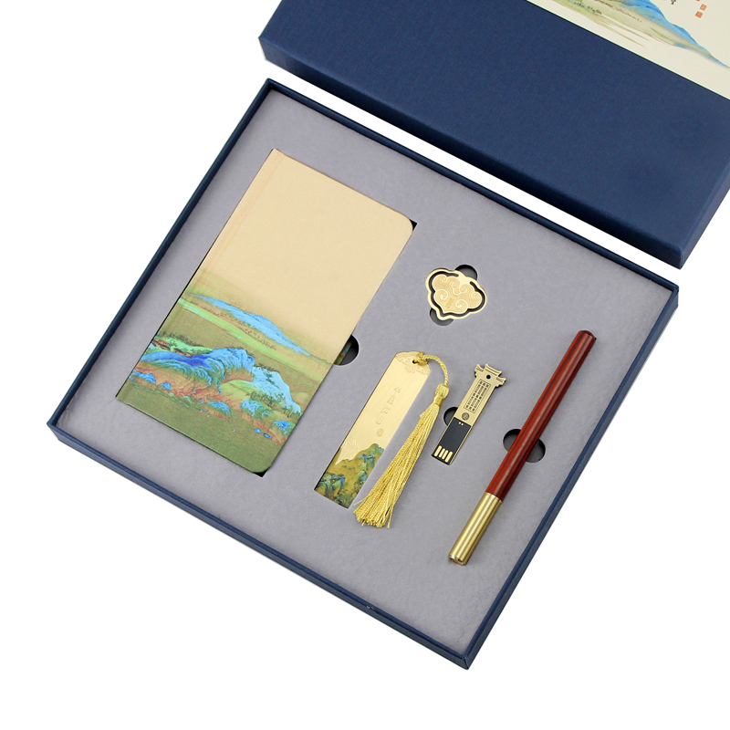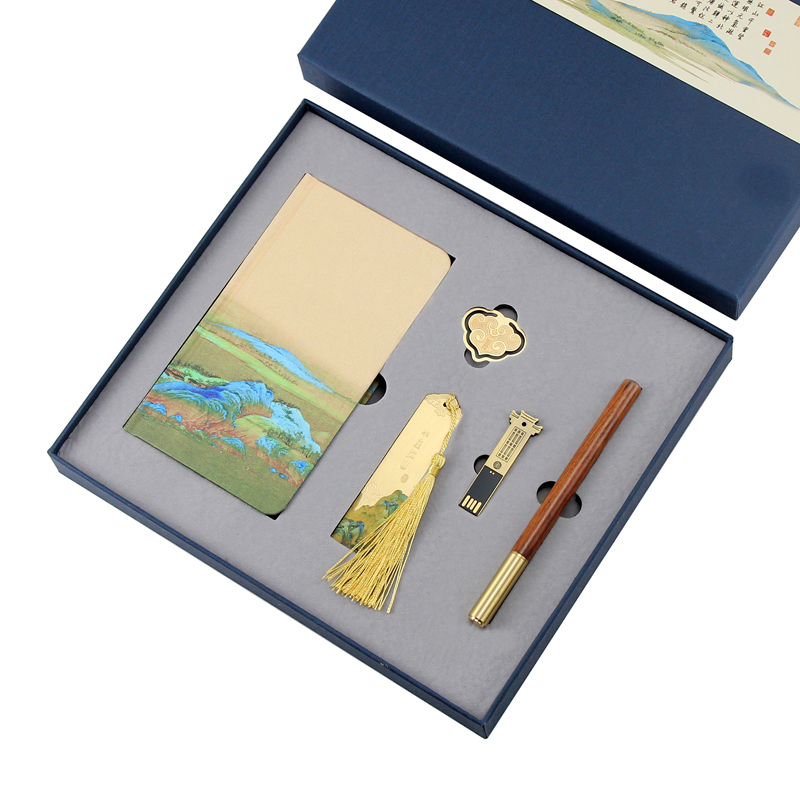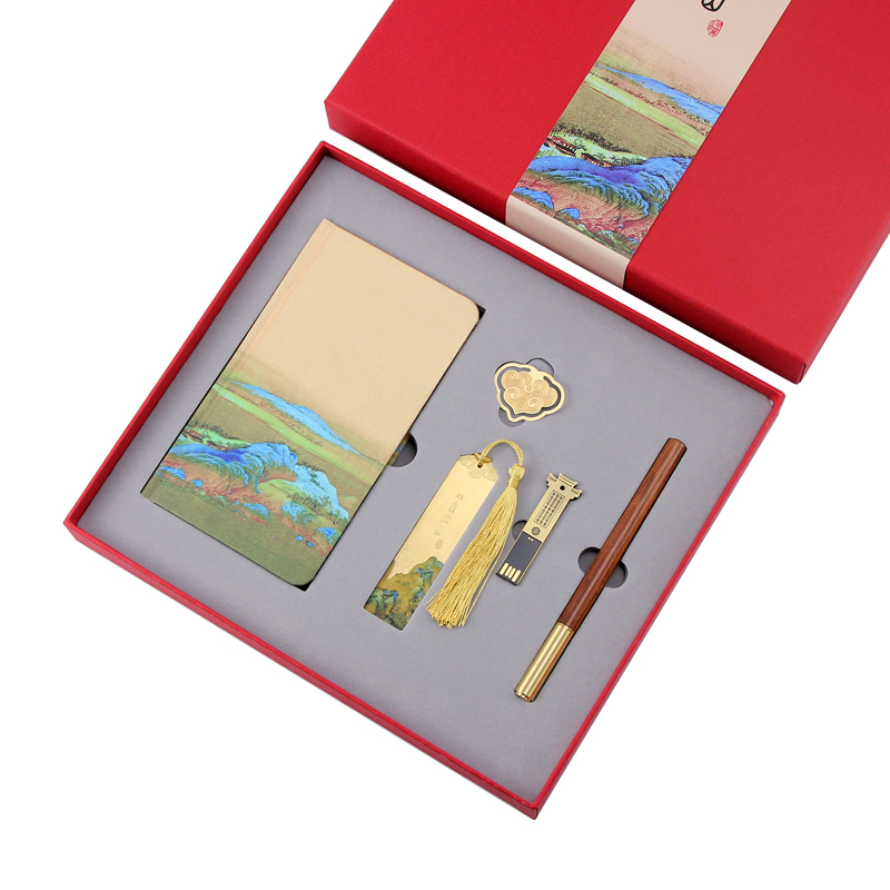 品名:江山丝绸本+书扣+书签+U盘+红木笔