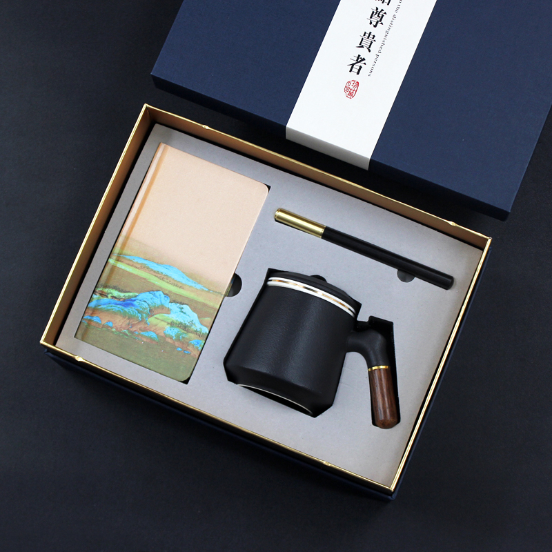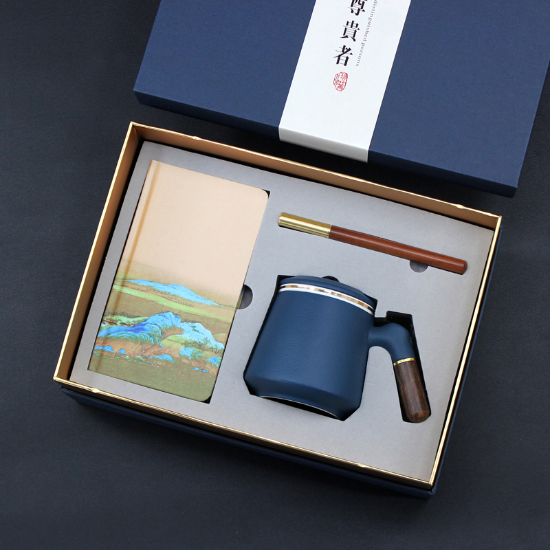 型号:T5-05-2(陶瓷茶漏杯) 配置: 江山丝绸本+笔+陶瓷杯 颜色:蓝、黑、红 礼盒:300*215*120mm 箱规:63*46*57cm 装箱数:16套 包装:配礼盒、手提袋 礼盒颜色:深蓝色、红色 零售价:148元