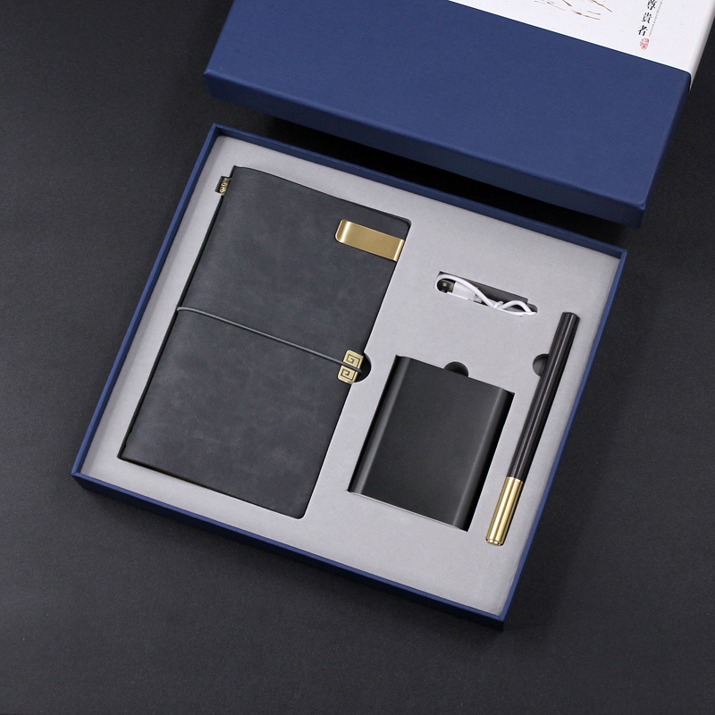 型号:T4-03-1 配置: 旅行本+充电宝+匠心笔 颜色:棕、黑、蓝、红 规格:笔记本:200*120mm 笔:148*12mm 礼盒:280*250*35mm 箱规:59*52*35cm 装箱数:28套 包装:配礼盒、手提袋 礼盒颜色:深蓝色/红色 零售价:118元