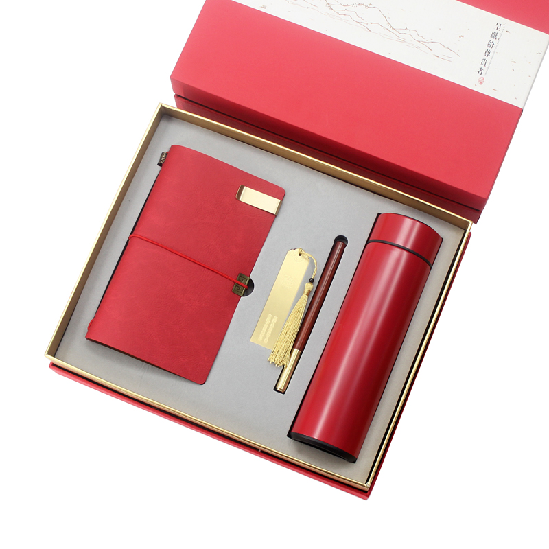 型号:T6-05(304金属杯) 配置: 手账本+书签+笔+保温杯 颜色:棕、黑、蓝、红 规格:笔记本:212*142mm 笔:148*12mm 礼盒:320*270*80mm 箱规:57*34*56cm 装箱数:12套 包装:配礼盒、手提袋 礼盒颜色:深蓝色/红色 零售价:128元