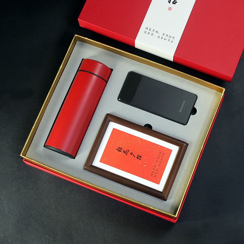 型号:T6-06-1(304金属杯) 配置: 304金属杯+纽曼电源+实木相框 颜色:金、黑、红 规格:相框:170*119*28mm 电源:147*67mm 礼盒:320*270*80mm 箱规:57*34*56cm 装箱数:12套 包装:配礼盒、手提袋 礼盒颜色:深蓝色/红色 零售价:248元
