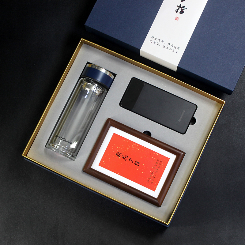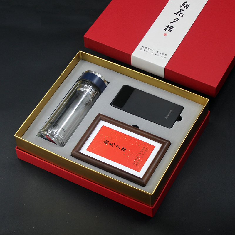 型号:T6-06-3(富光玻璃杯) 配置: 富光玻璃杯+纽曼电源+实木相框 颜色:白、黑 规格:相框:170*119*28mm 电源:147*67mm 礼盒:320*270*80mm 箱规:57*34*56cm 装箱数:12套 包装:配礼盒、手提袋 礼盒颜色:深蓝色/红色 零售价:168元