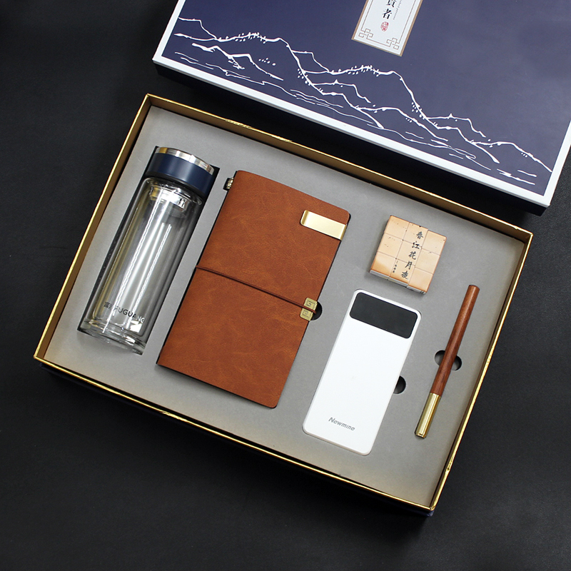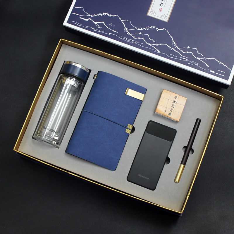 型号:T7-04-3(富光玻璃杯) 配置: 富光玻璃杯+手账本+三阶魔方+纽曼电源+笔 颜色:黑、红 规格:充电宝:146*67mm 保温杯:190*65mm 礼盒:400*280*80mm 箱规:57*34*56cm 装箱数:12套 包装:配礼盒、手提袋 礼盒颜色:深蓝色/红色 零售价:318元