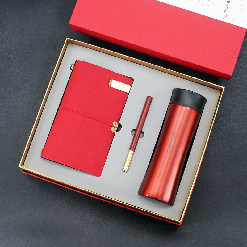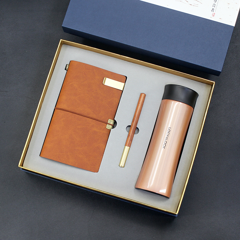 型号:T6-01-4(乐扣杯) 配置: 乐扣保温杯+笔+手账本 颜色:棕、黑、蓝、红 规格:笔记本:200*120mm 笔:148*12mm 礼盒:320*270*80mm 箱规:57*34*56cm 装箱数:12套 包装:配礼盒、手提袋 礼盒颜色:深蓝色/红色 零售价:208元