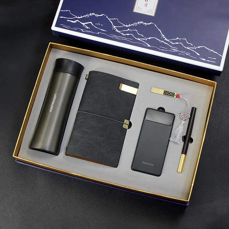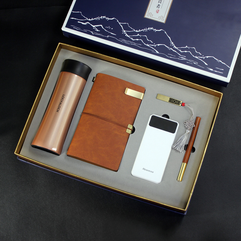 型号:T7-03-4(乐扣杯) 配置: 乐扣杯+手账本+优盘+纽曼电源+笔 颜色:黑、红、棕、蓝 规格:手账本:200*120mm 保温杯:215*65mm 礼盒:400*280*80mm 箱规:57*34*56cm 装箱数:12套 包装:配礼盒、手提袋 礼盒颜色:深蓝色/红色 零售价:378元
